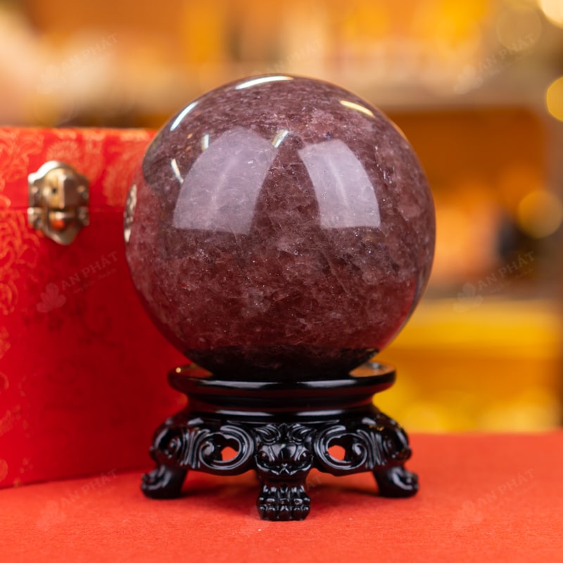 Ảnh cận cảnh quả cầu thạch anh dâu tây hồng