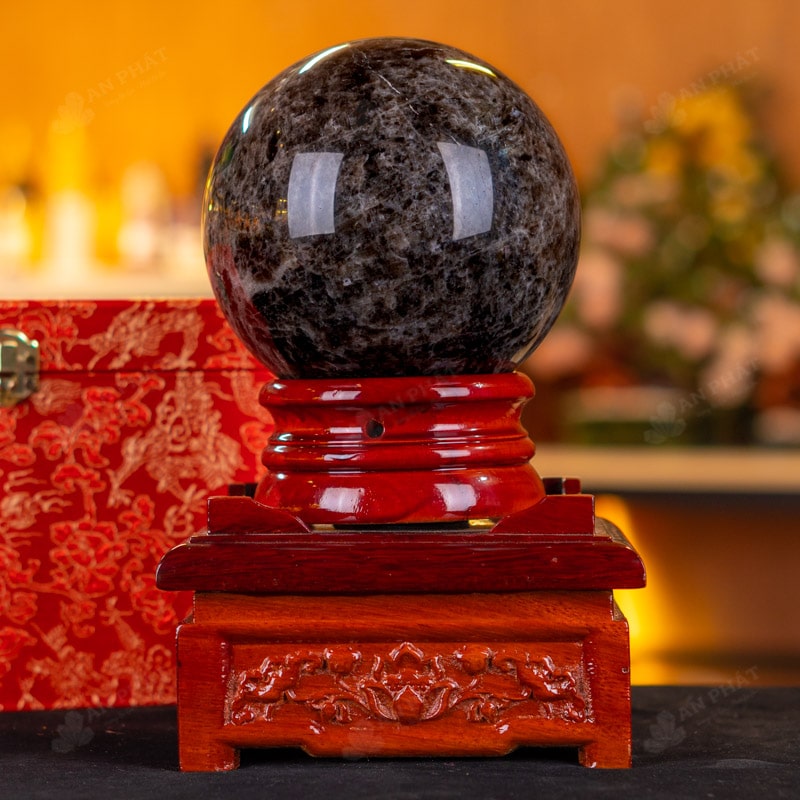 Ảnh cận cảnh quả cầu đá thạch anh đen