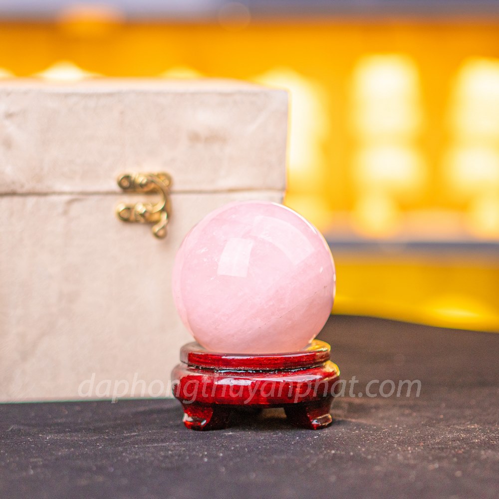 Quả cầu thạch anh hồng có dạng khối cầu, nó được chế tạo từ chất liệu quý đó là thạch anh hồng. Tuổi đời của khoáng vật thạch anh hồng đã có từ hàng triệu năm, hấp thụ tinh hoa của đất trời. Vì thế mà quả cầu mang tới nguồn năng lượng và khí dương dồi dào.