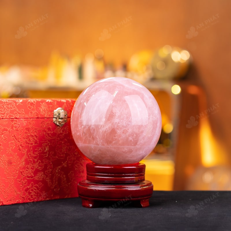Ảnh cận cảnh quả cầu đá thạch anh hồng