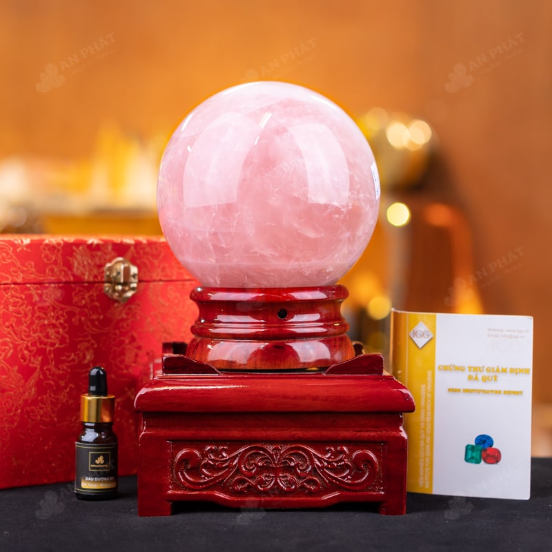 - Trọn bộ sản phẩm bao gồm: quả cầu + 01 đế gỗ + hộp đựng sang trọng + túi giấy sang trọng + dầu dưỡng đá + giấy kiểm định chất lượng đá