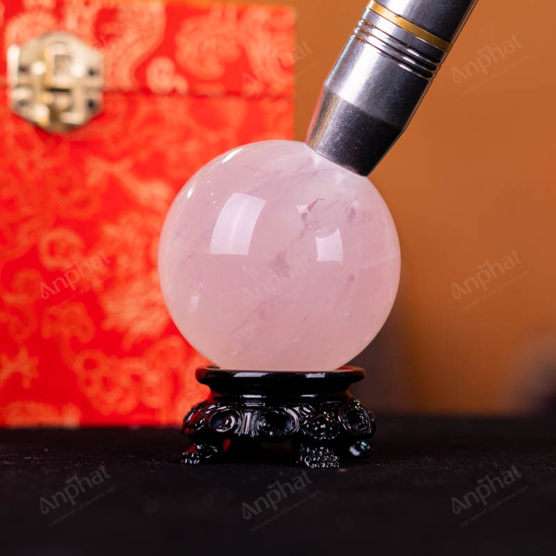 Ảnh cận cảnh quả cầu thạch anh hồng