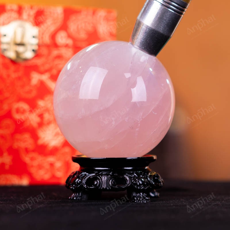 Ảnh cận cảnh quả cầu thạch anh hồng