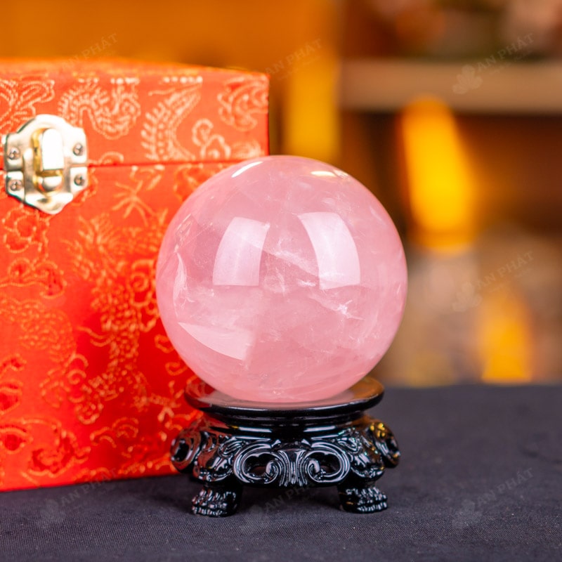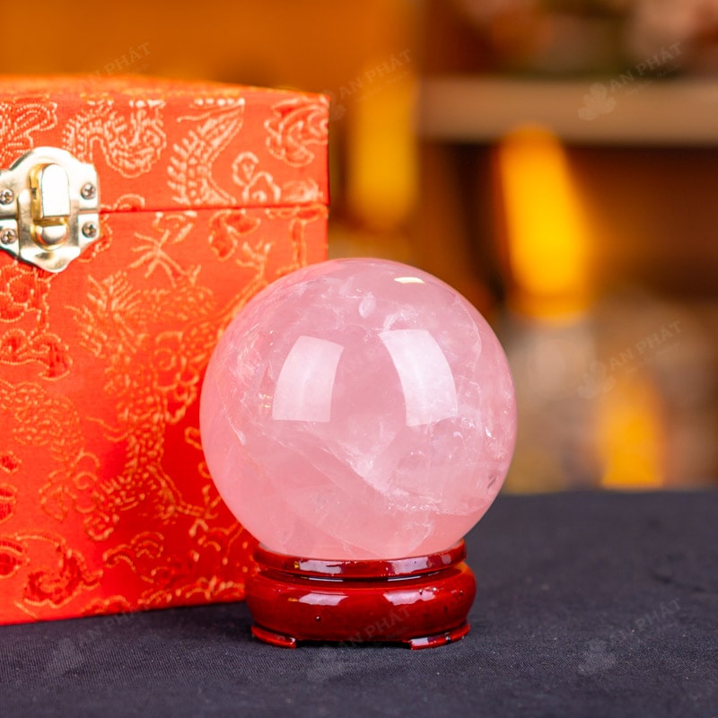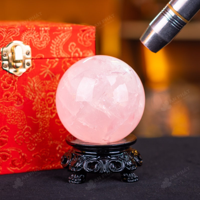 Ảnh cận cảnh quả cầu đá thạch anh hồng