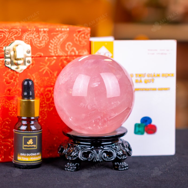 - Trọn bộ sản phẩm bao gồm: quả cầu + 01 đế gỗ + hộp đựng sang trọng + túi giấy sang trọng + dầu dưỡng đá + thiệp + giấy kiểm định chất lượng đá
