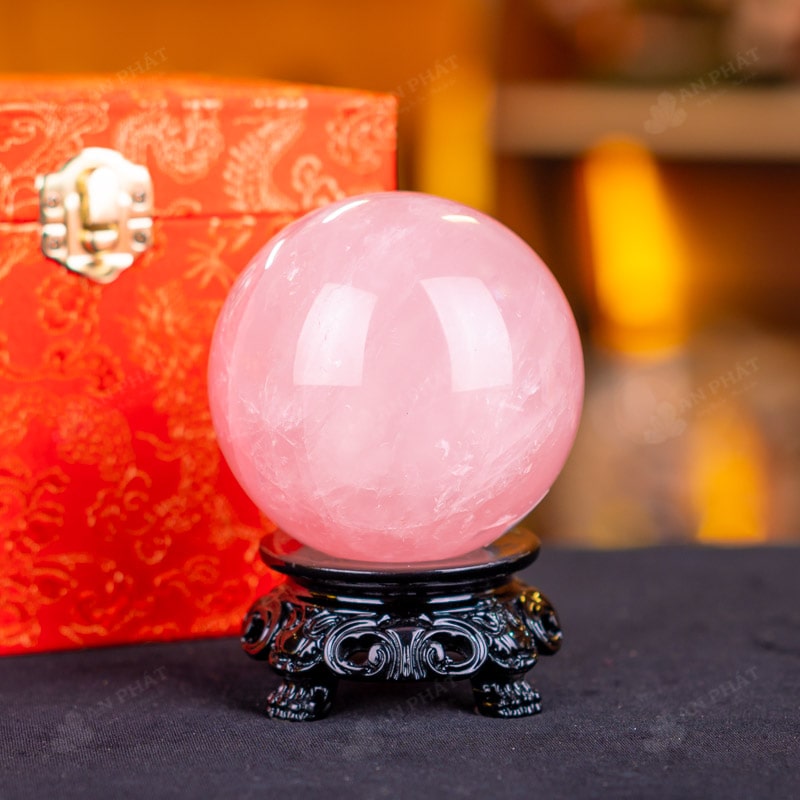 Ảnh cận cảnh quả cầu thạch anh hồng