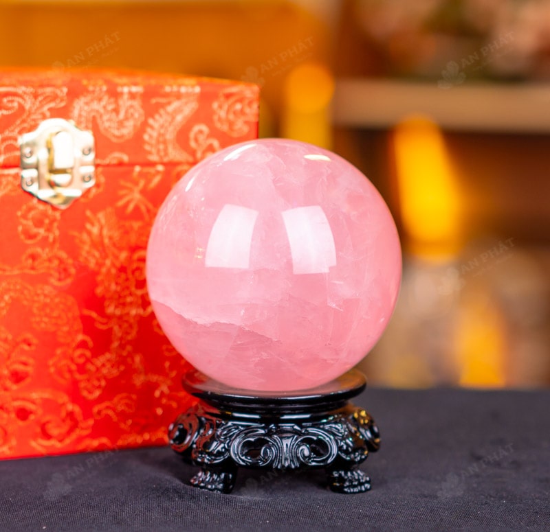 Ảnh cận cảnh quả cầu đá thạch anh hồng