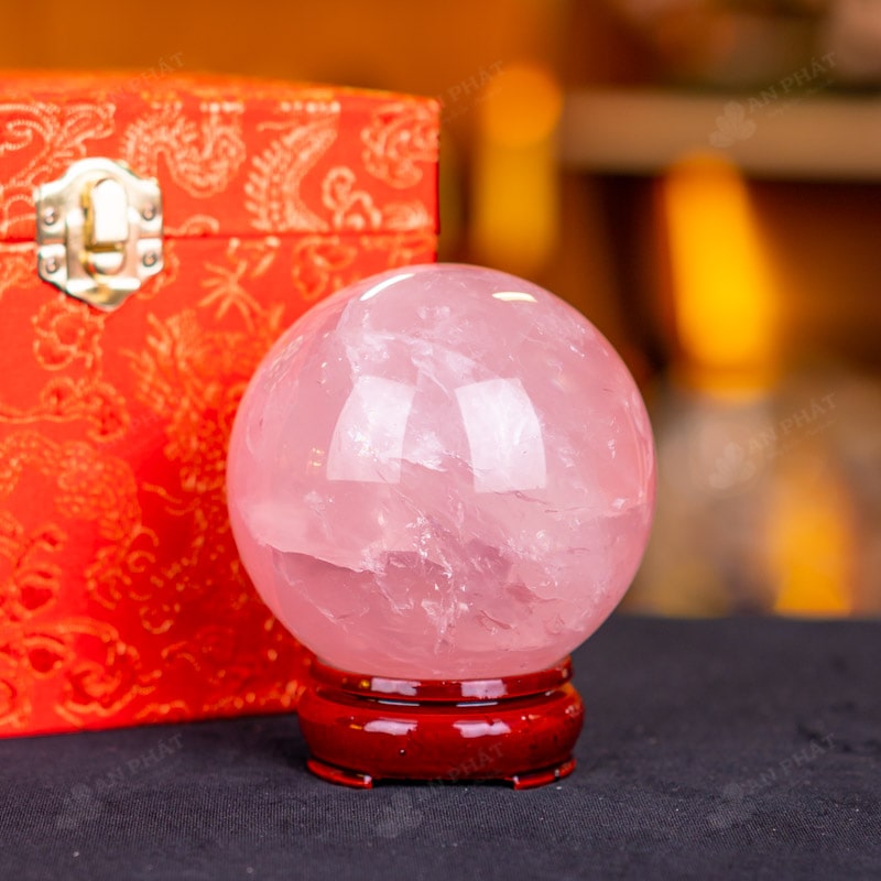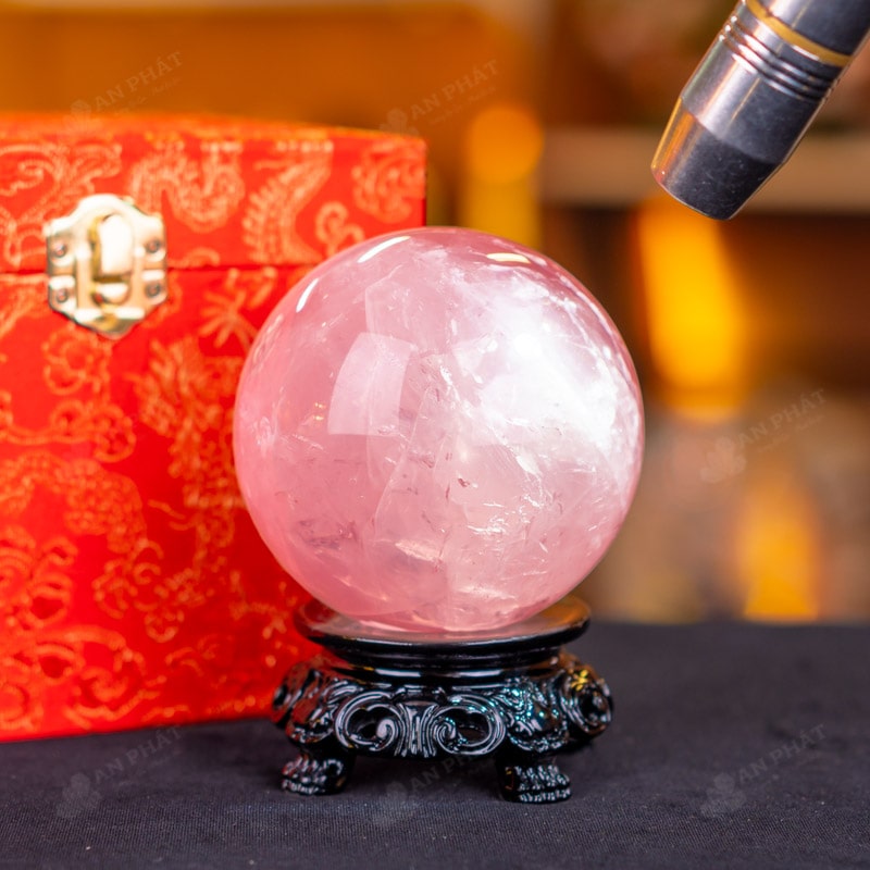 Ảnh cận cảnh quả cầu đá thạch anh hồng