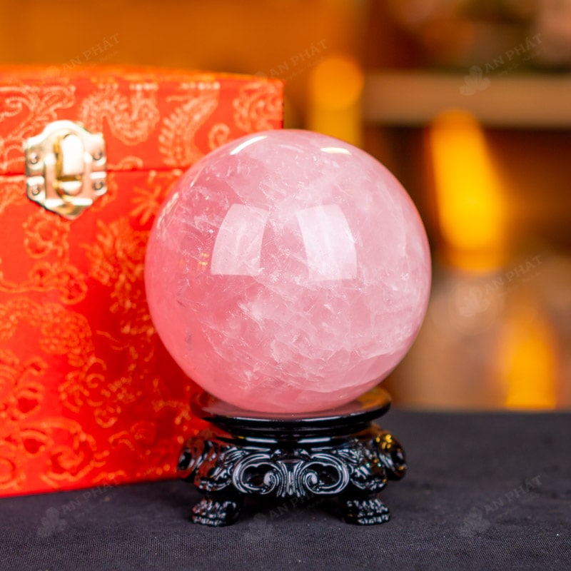 Ảnh cận cảnh quả cầu đá thạch anh hồng