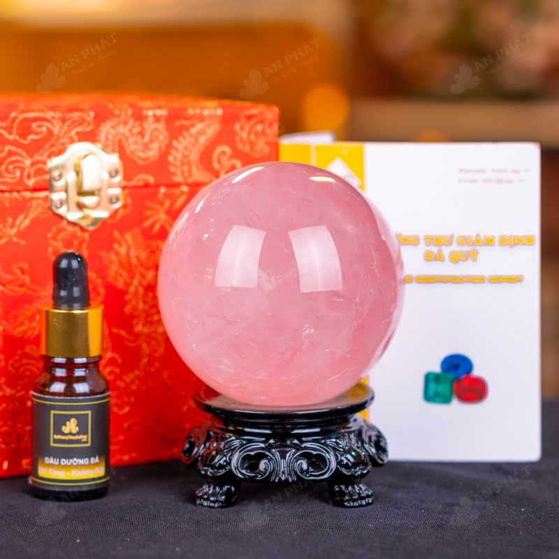 - Trọn bộ sản phẩm bao gồm: quả cầu + 01 đế gỗ + hộp đựng sang trọng + túi giấy sang trọng + dầu dưỡng đá + thiệp + giấy kiểm định chất lượng đá