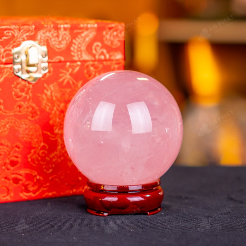 Ảnh cận cảnh quả cầu đá thạch anh hồng