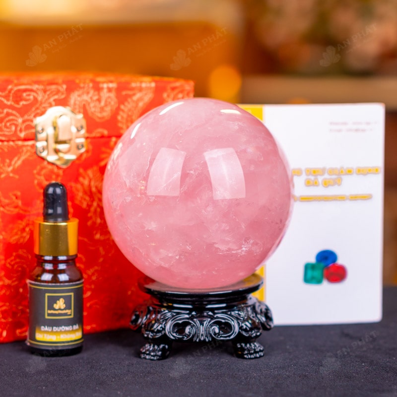 - Trọn bộ sản phẩm bao gồm: quả cầu + 01 đế gỗ + hộp đựng sang trọng + túi giấy sang trọng + dầu dưỡng đá + thiệp + giấy kiểm định chất lượng đá