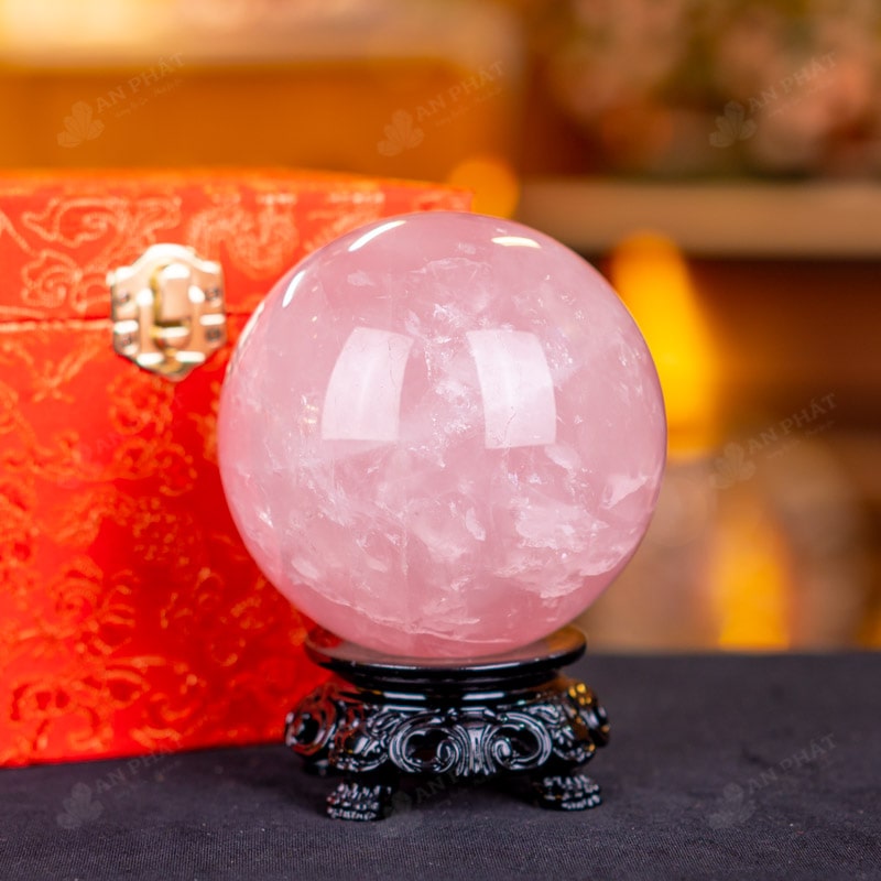 Ảnh cận cảnh quả cầu đá thạch anh hồng