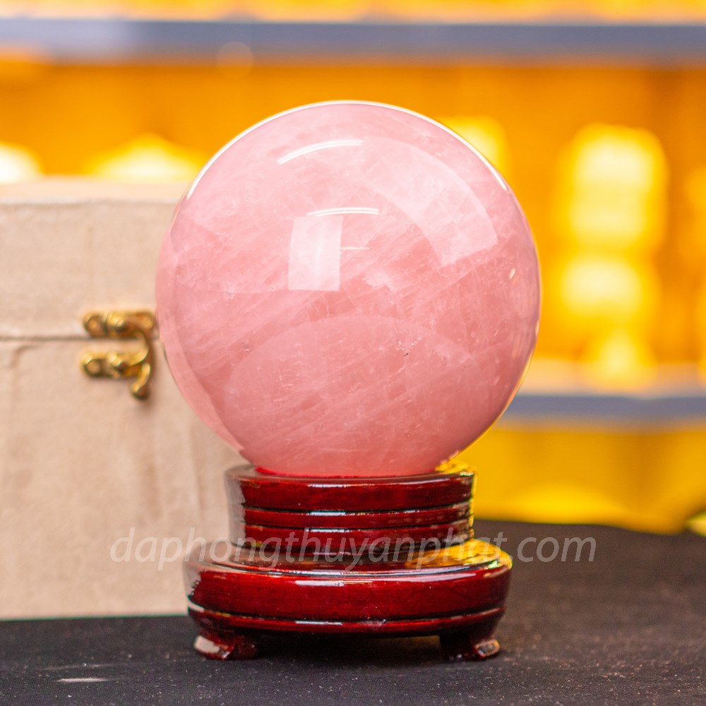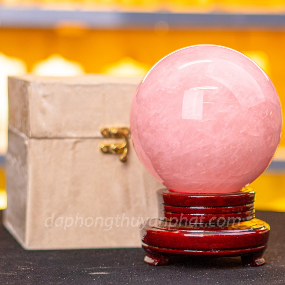 Quả cầu thạch anh hồng có dạng khối cầu, nó được chế tạo từ chất liệu quý đó là thạch anh hồng. Tuổi đời của khoáng vật thạch anh hồng đã có từ hàng triệu năm, hấp thụ tinh hoa của đất trời. Vì thế mà quả cầu mang tới nguồn năng lượng và khí dương dồi dào.