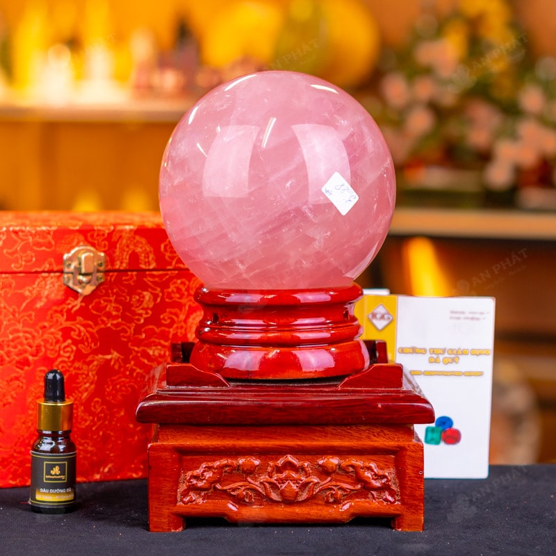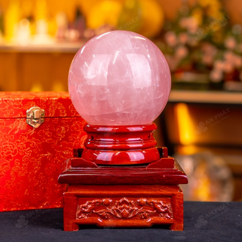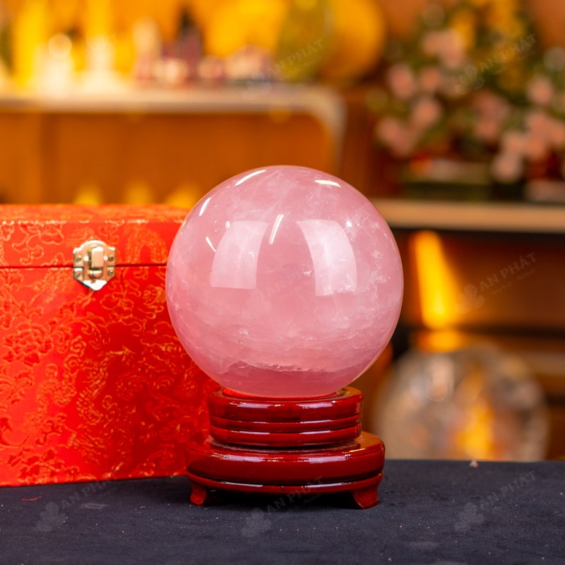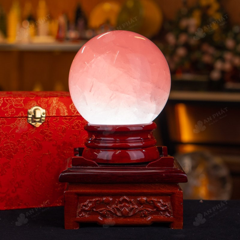 Ảnh cận cảnh quả cầu đá thạch anh hồng