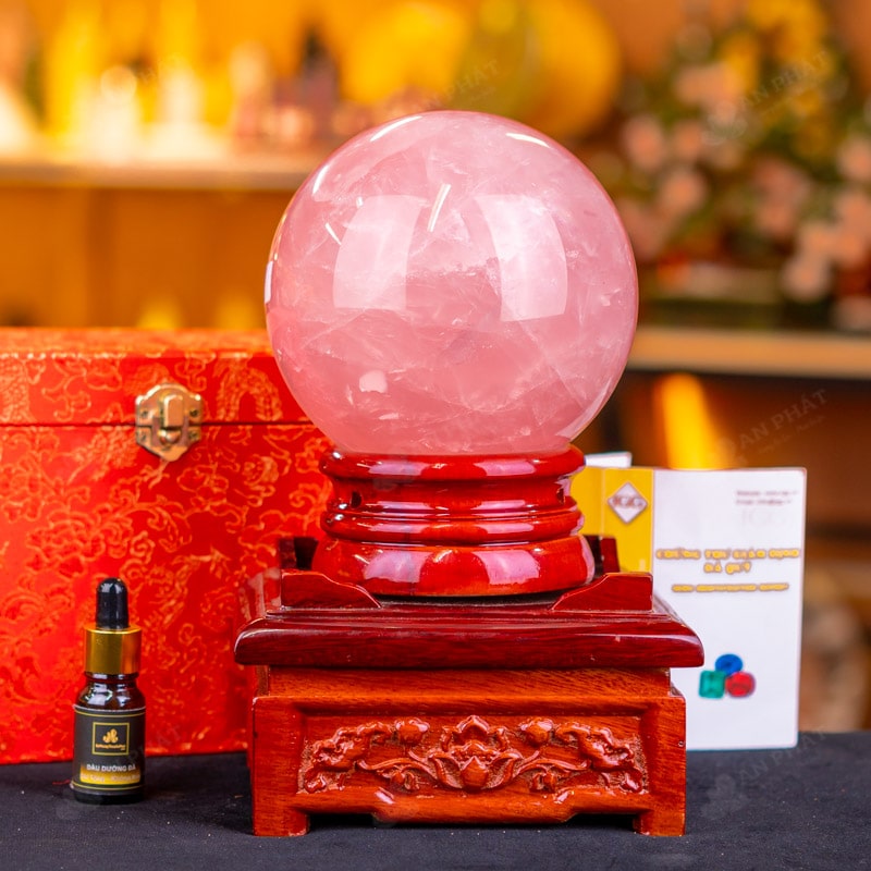 - Trọn bộ sản phẩm bao gồm: quả cầu + 01 đế gỗ + hộp đựng sang trọng + túi giấy sang trọng + dầu dưỡng đá + thiệp + giấy kiểm định chất lượng đá