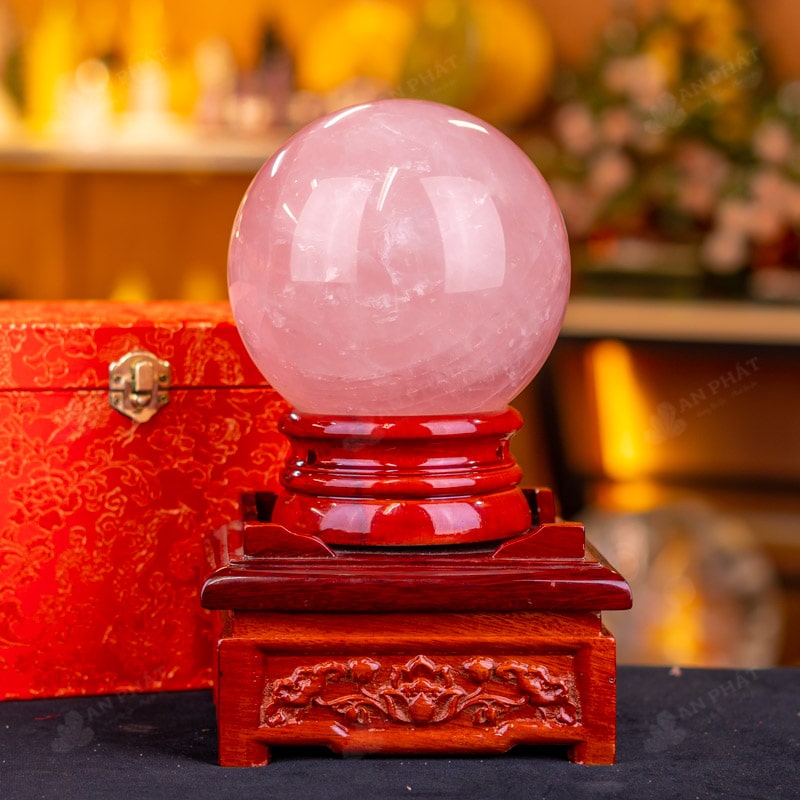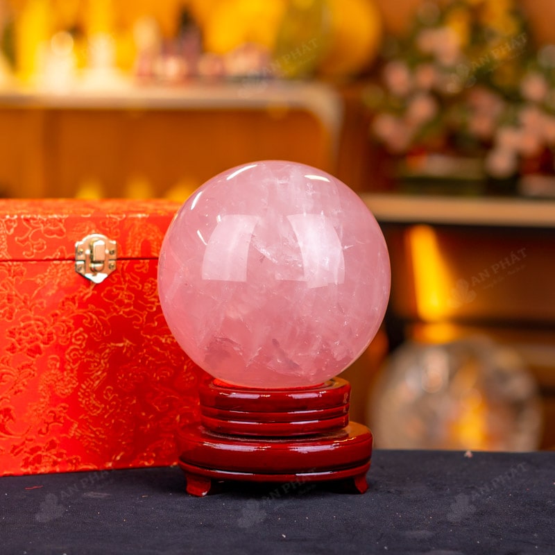 Ảnh cận cảnh quả cầu đá thạch anh hồng