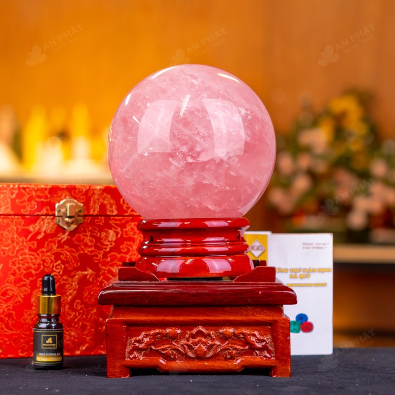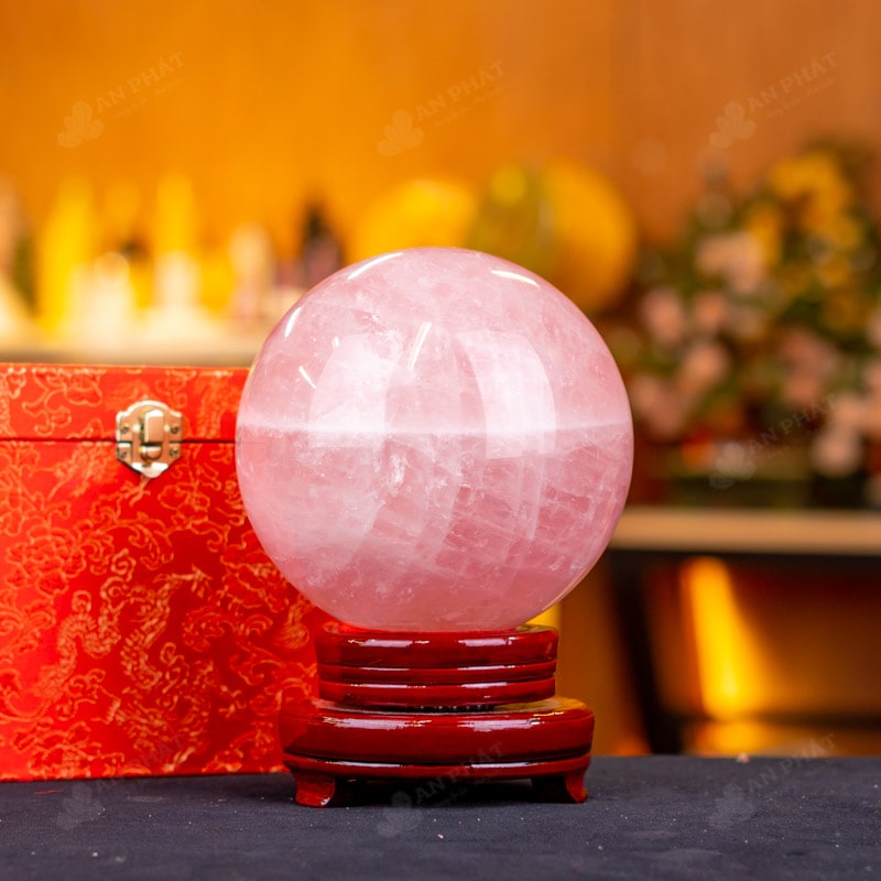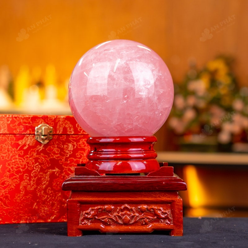 Ảnh cận cảnh quả cầu đá thạch anh hồng