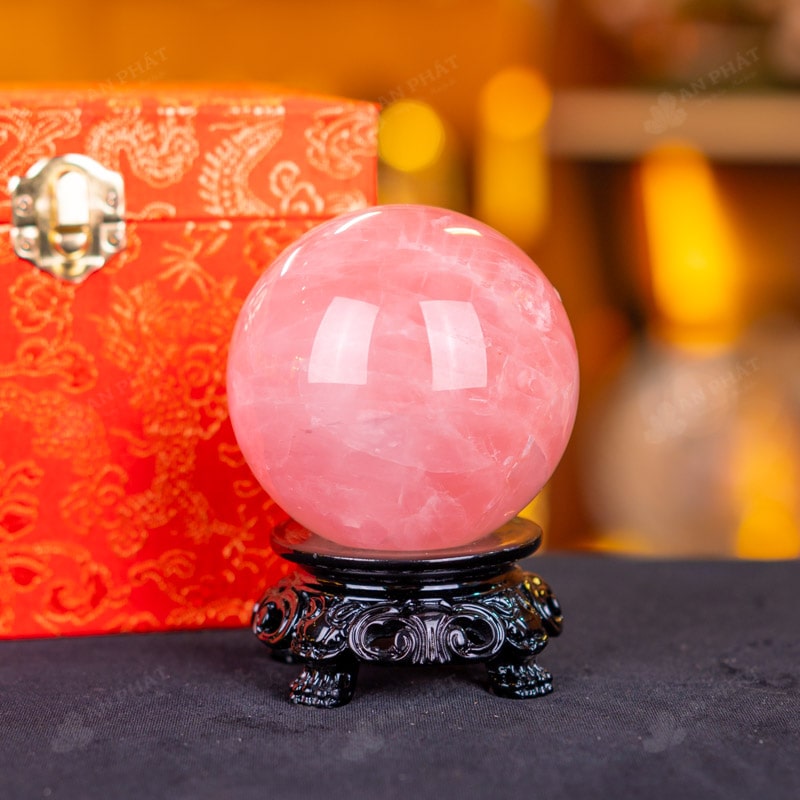 Ảnh cận cảnh quả cầu đá thạch anh hồng