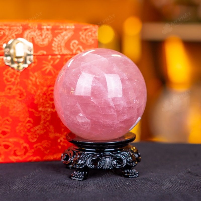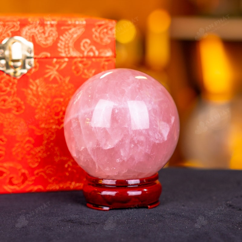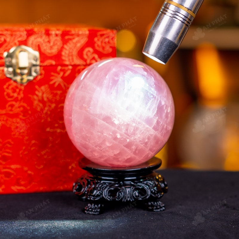 Ảnh cận cảnh quả cầu đá thạch anh hồng