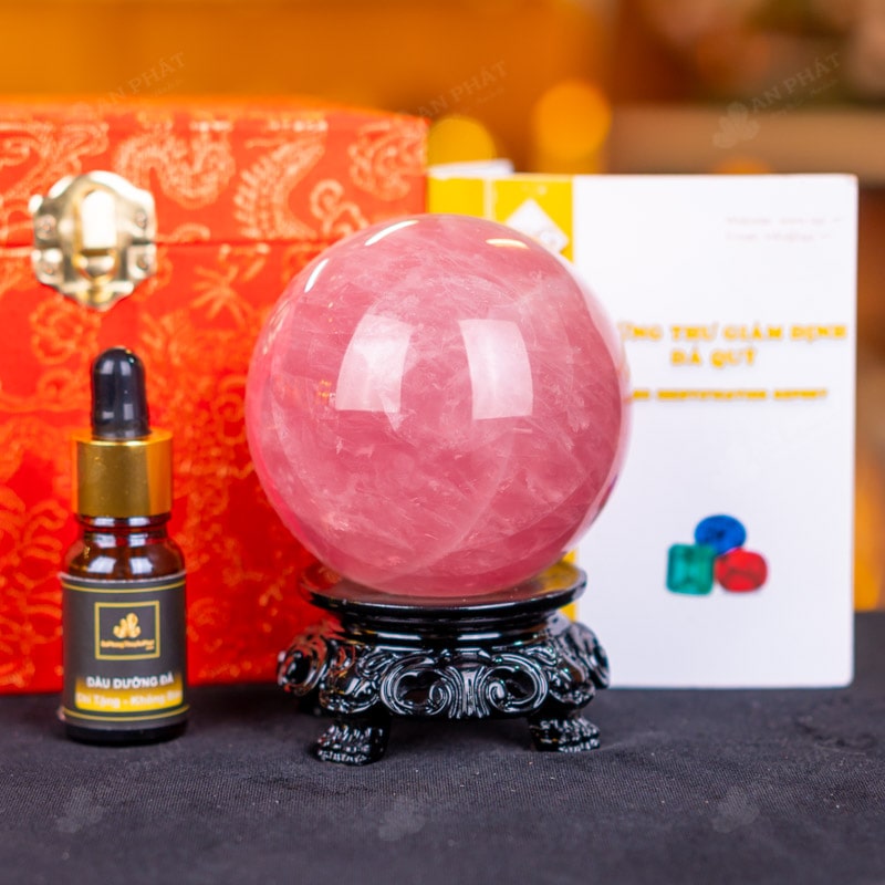 - Trọn bộ sản phẩm bao gồm: quả cầu + 01 đế gỗ + hộp đựng sang trọng + túi giấy sang trọng + dầu dưỡng đá + thiệp + giấy kiểm định chất lượng đá