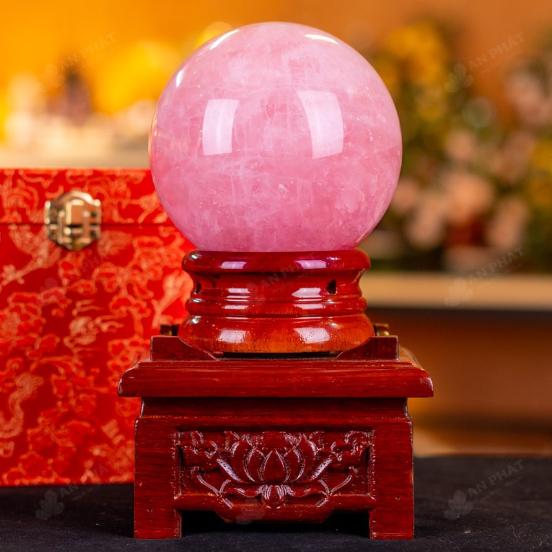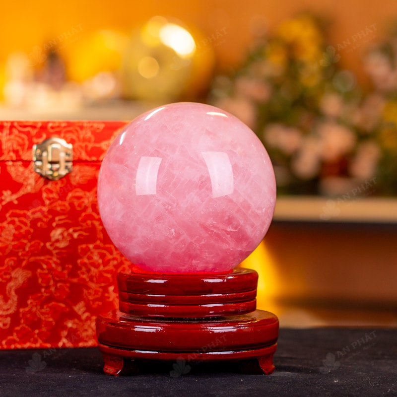 Ảnh cận cảnh quả cầu đá thạch anh hồng