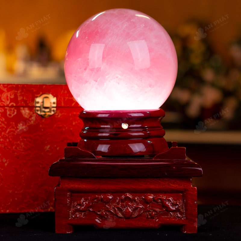 Ảnh cận cảnh quả cầu đá thạch anh hồng