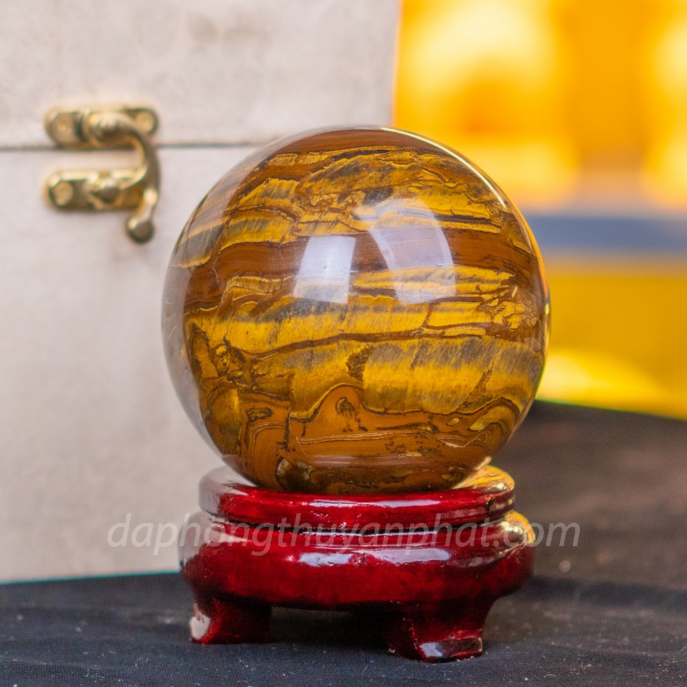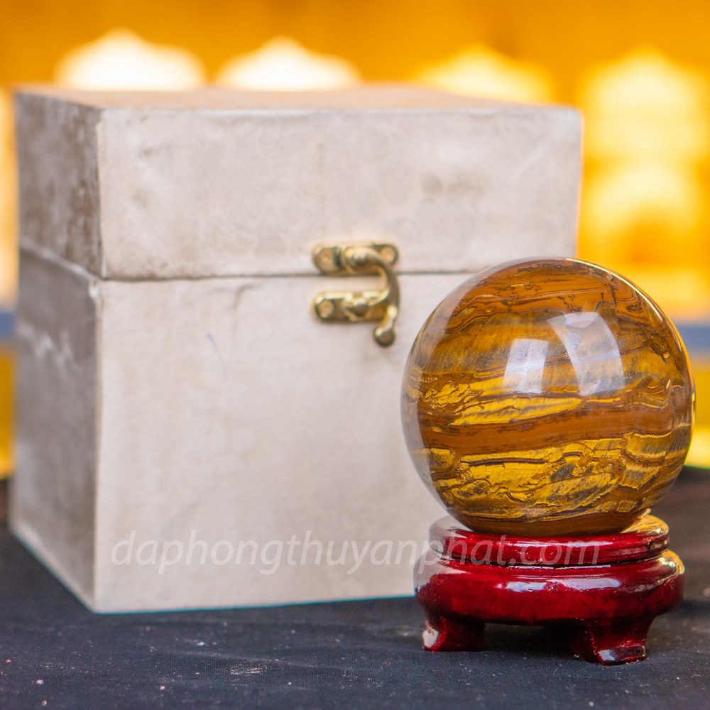 Với mẫu sản phẩm quả cầu đá thạch anh mắt hổ tại An Phát được làm từ chất liệu đá thạch anh mắt hổ 100% vô cùng đẹp mắt. Sản phẩm nổi bật bởi màu quả cầu mắt hổ với các vân sắc tự nhiên. Các dải xếp liền kề nhau tạo thành các dải bao tròn quanh quả cầu.