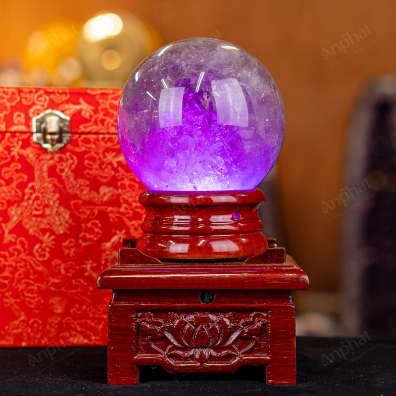 - Trọn bộ sản phẩm bao gồm: quả cầu + 01 đế gỗ + hộp đựng sang trọng + túi giấy sang trọng + dầu dưỡng đá + giấy kiểm định chất lượng đá