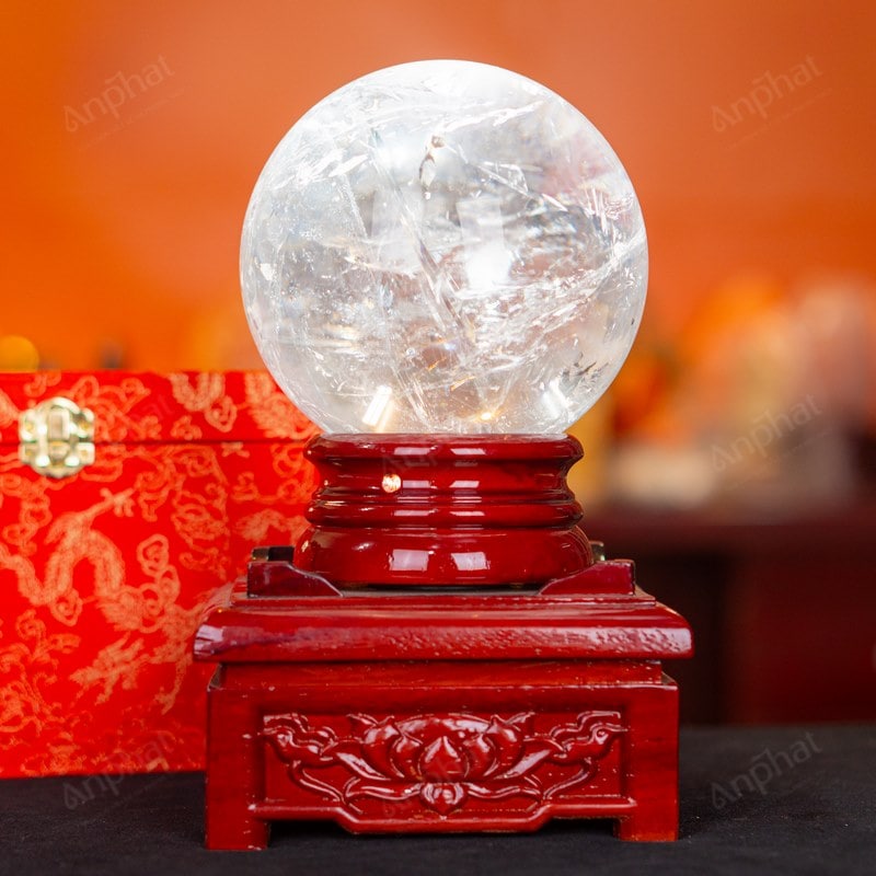 Ảnh cận cảnh Quả Cầu Thạch Anh Trắng Trong