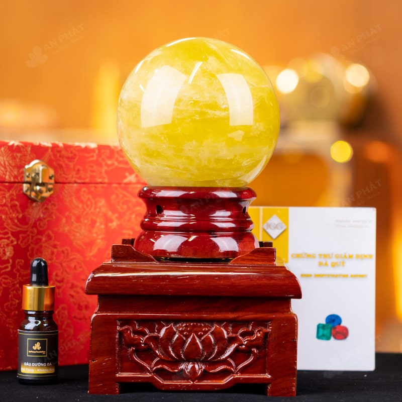 - Trọn bộ sản phẩm bao gồm: quả cầu + 01 đế gỗ + hộp đựng sang trọng + túi giấy sang trọng + dầu dưỡng đá + thiệp + giấy kiểm định chất lượng đá