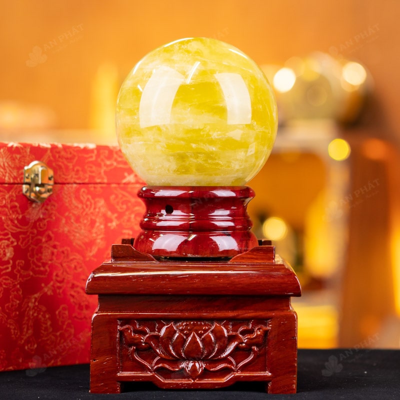 Ảnh cận cảnh quả cầu thạch anh vàng