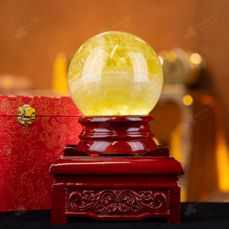Ảnh cận cảnh quả cầu thạch anh vàng