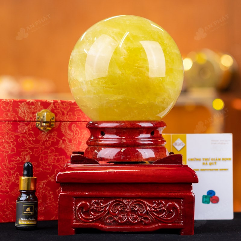 - Trọn bộ sản phẩm bao gồm: quả cầu + 01 đế gỗ + hộp đựng sang trọng + túi giấy sang trọng + dầu dưỡng đá + thiệp + giấy kiểm định chất lượng đá