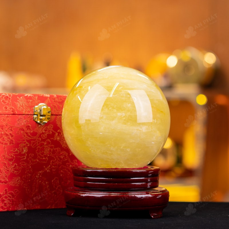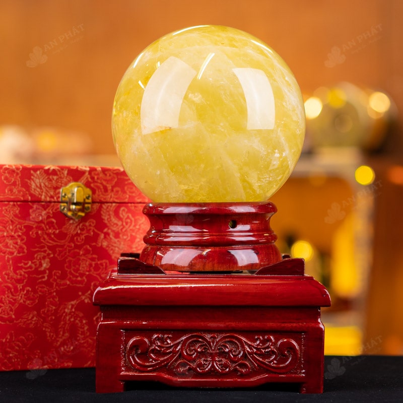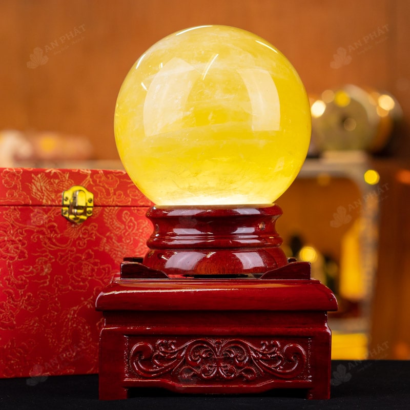 Ảnh cận cảnh quả cầu thạch anh vàng