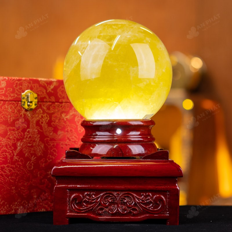 Ảnh cận cảnh quả cầu thạch anh vàng