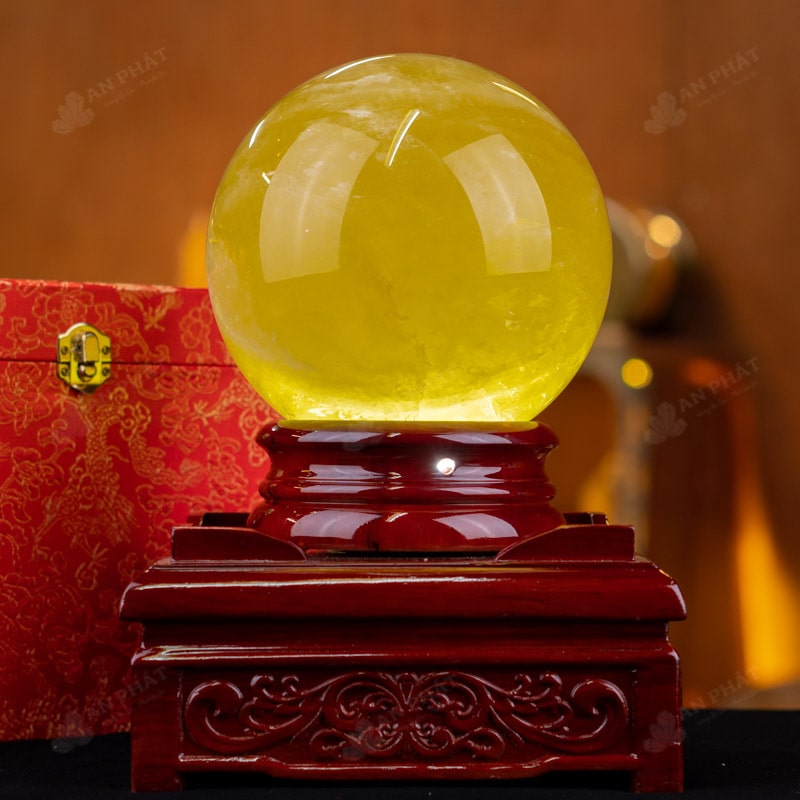 Ảnh cận cảnh quả cầu thạch anh vàng