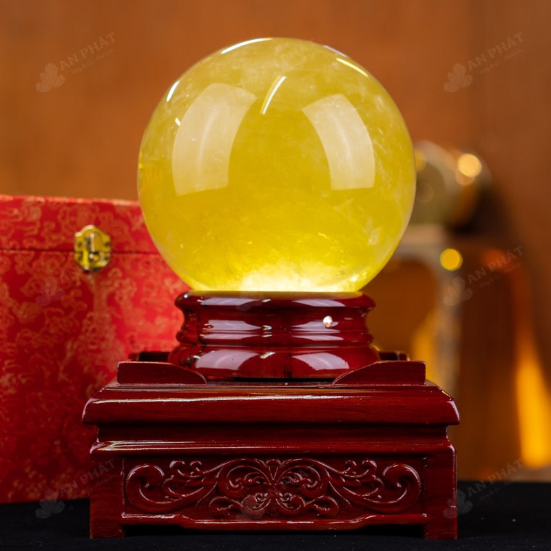 Ảnh cận cảnh quả cầu thạch anh vàng