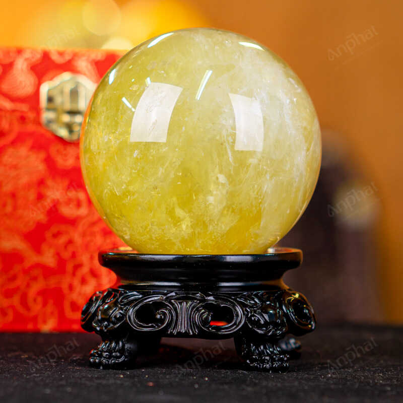 Ảnh cận cảnh quả cầu thạch anh vàng