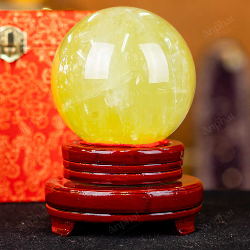 Ảnh cận cảnh quả cầu đá thạch anh vàng