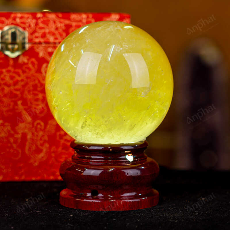 Ảnh cận cảnh quả cầu đá thạch anh vàng
