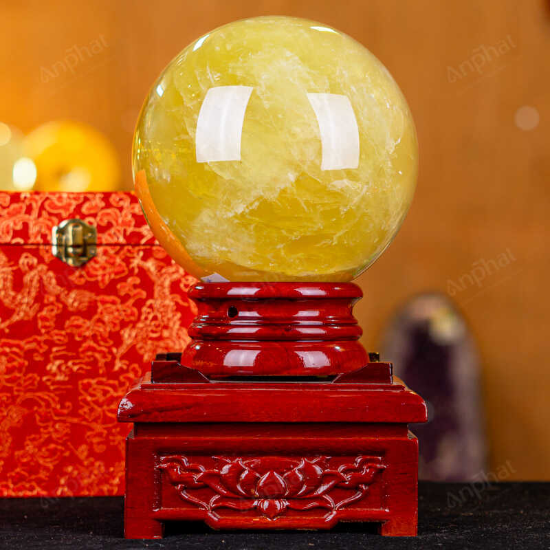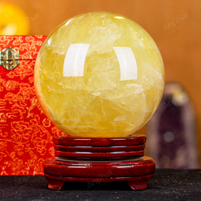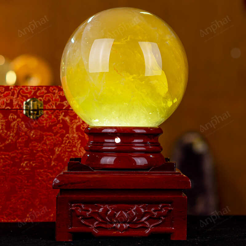 Ảnh cận cảnh quả cầu đá thạch anh vàng