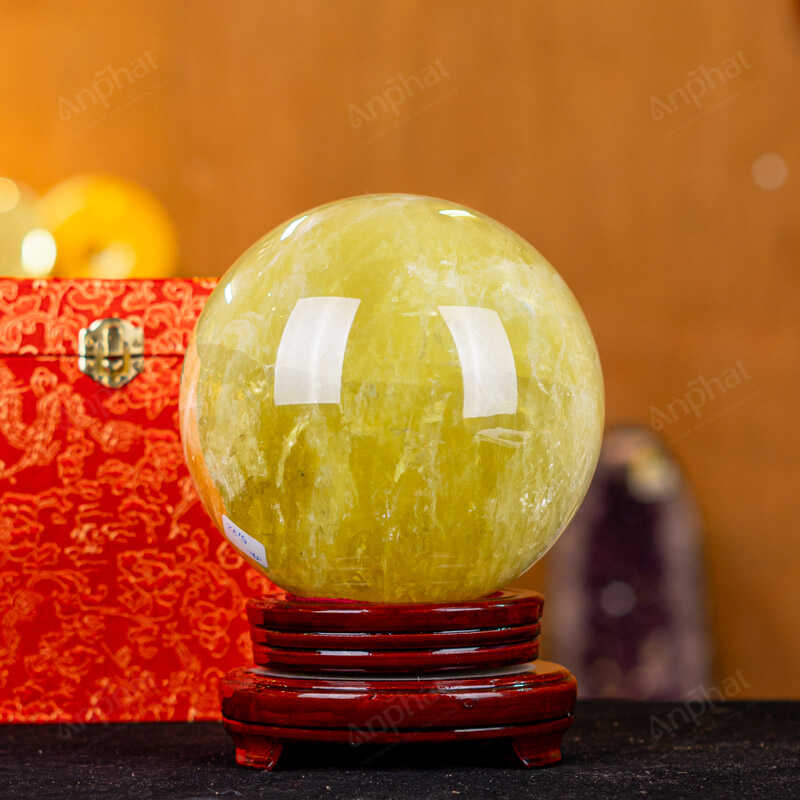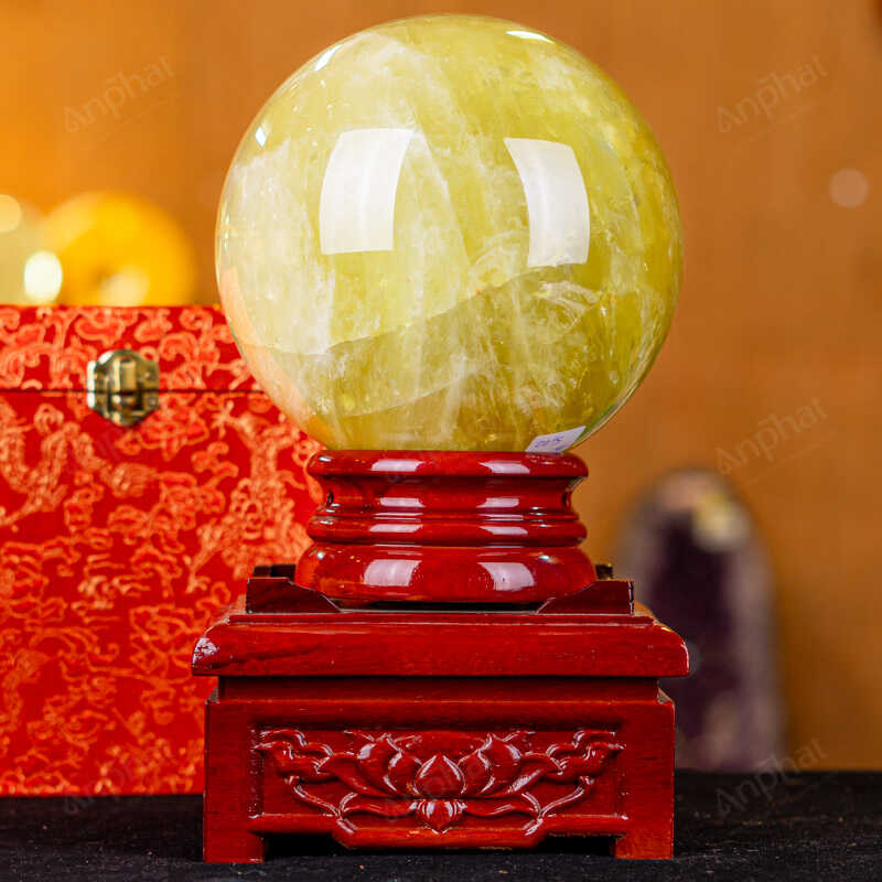 Ảnh cận cảnh quả cầu đá thạch anh vàng