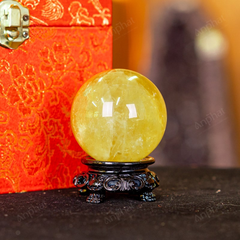 Ảnh cận cảnh quả cầu đá thạch anh vàng