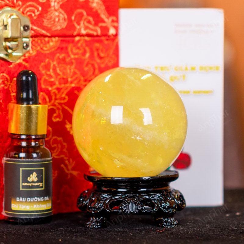 - Trọn bộ sản phẩm bao gồm: quả cầu + 01 đế gỗ + hộp đựng sang trọng + túi giấy sang trọng + dầu dưỡng đá + thiệp + giấy kiểm định chất lượng đá