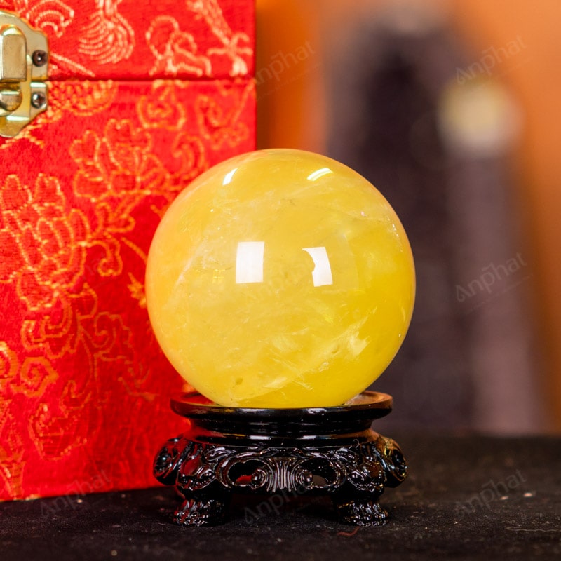Ảnh cận cảnh quả cầu đá thạch anh vàng
