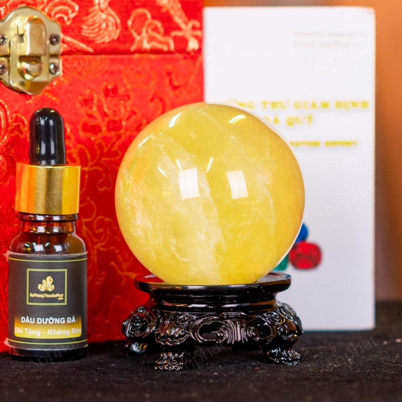 - Trọn bộ sản phẩm bao gồm: quả cầu + 01 đế gỗ + hộp đựng sang trọng + túi giấy sang trọng + dầu dưỡng đá + thiệp + giấy kiểm định chất lượng đá
