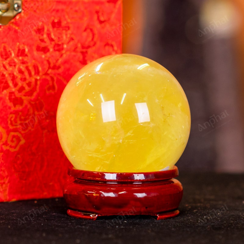 Ảnh cận cảnh quả cầu đá thạch anh vàng