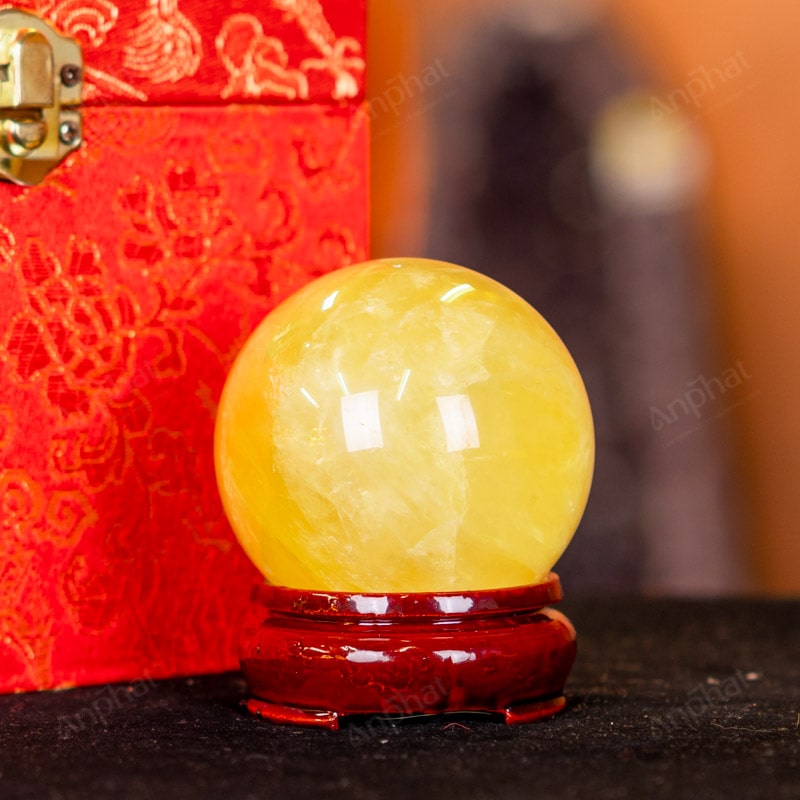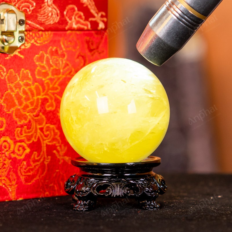 Ảnh cận cảnh quả cầu đá thạch anh vàng