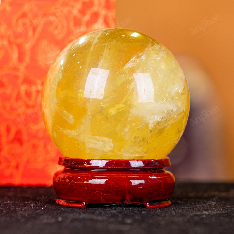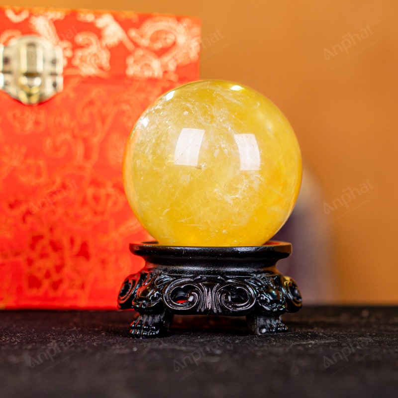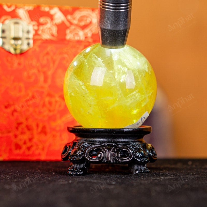 Ảnh cận cảnh quả cầu đá thạch anh vàng
